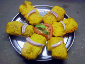 מוציאים לנייר סופג, מקשטים בכוזברה קצוצה בבצל קצוץ ובפלחי עגבנייה דקיקים.